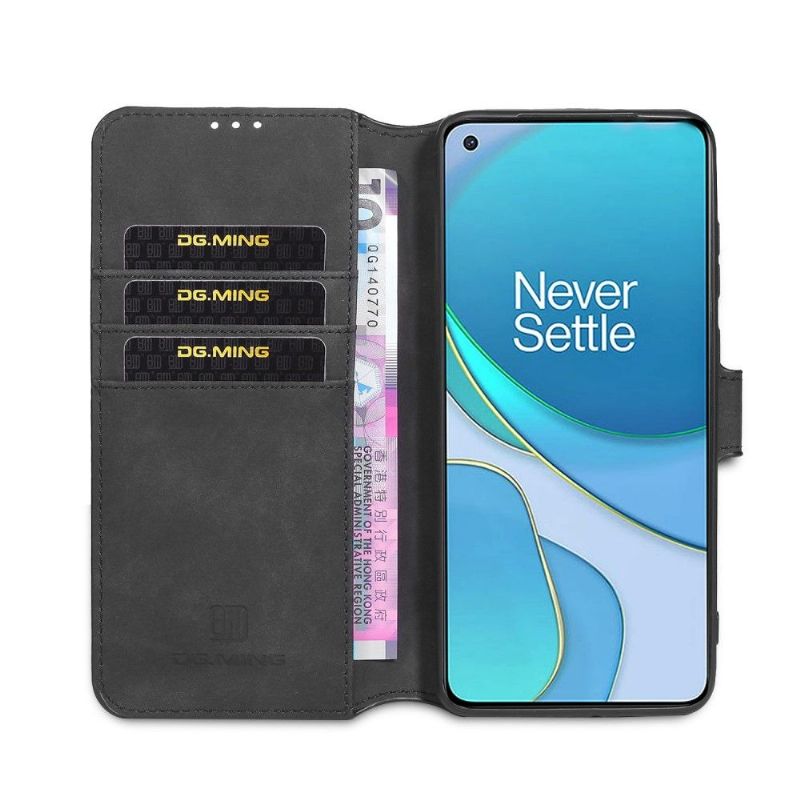 Oblečte svůj OnePlus 8T do třídy nadčasově a vyberte si retro styl DG MING Pouzdro pouzdra na karty s koženým efektem.